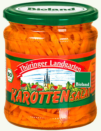 Crunchy organic carrot strips in an aromatic sweet-sour infusion.