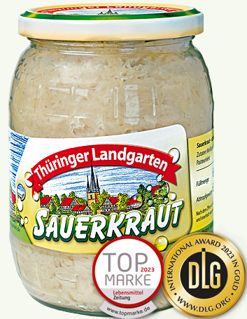 Our mild Sauerkraut is made from freshly harvested white cabbage and processed gently to preserved our typical mild aroma.