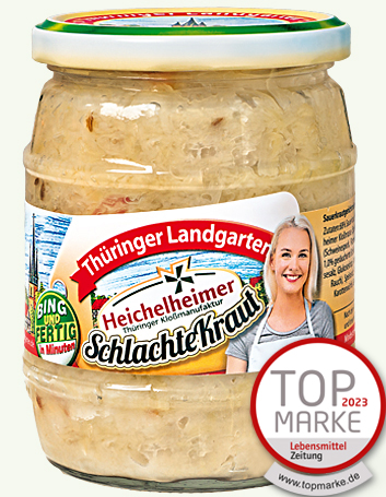 Ingredients: 90% Sauerkraut (white cabbage, salt), 3,0% „Heichelheimer“ table potatoe rasps (potatoes, antioxidant: sodium hydrogen sulphite), 2,3% greaves lard (bacon, greaves), sugar, flavours, 1,0% smoked ham dices (pork, salt, glucose syrup, antioxidant: sodium ascorbate, stabilizer: diphosphate, preservative: sodium nitrite, smoke), antioxidant: ascorbic acid, carrot dices, spices.